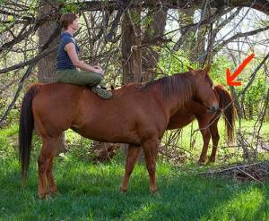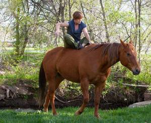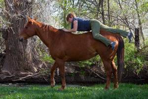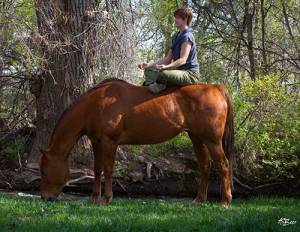 I was getting some family and professional photos taken with my horses and I decided it would be fun to get a photo of me meditating on the butt of a free (no ropes, no saddle, no nothing for control) horse.